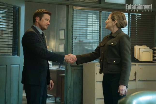 На нескольких снимках, опубликованных EW, можно увидеть эмоциональную игру Джереми в предстоящем четвертом сезоне. Вот его сдерживает от драки группа полицейских, а вот он протягивает кулак Кайлу во время визита в тюрьму. «Джереми Реннер — на вершине своей игры после возвращения [после травмы], — добавляет Диллон. — Просто работает на полную катушку, и это захватывает». На другом кадре Майк пожимает руку новой начальнице тюрьмы Нине Хоббс, которую играет Иди Фалько («Клан Сопрано», «Американская история преступлений»). «Мне нравится созданная нами непредсказуемая стремительность, от которой невозможно отвести взгляд. Персонаж Фалько олицетворяет это, — говорит Диллон. — Я так долго был ее поклонником, а когда видишь ее в работе, в мире "Мэра Кингстауна" и в компании Джереми Реннера… это взрывоопасно».