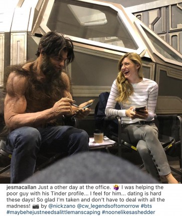 Джес Макаллан (Эйва Шарп) в своем инстаграме выложила фотографию с Мартином в образе персонажа и написала: «Еще один день в офисе. Я помогала бедному парню с его профилем в Tinder... Сочувствую ему... Знакомится с кем-то так сложно в наши дни! Я очень рада, что у меня уже есть пара, и мне не приходится иметь дело с этим безумием!».